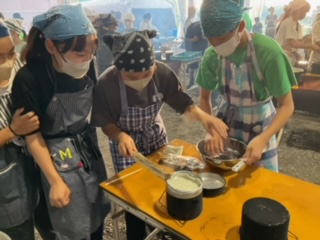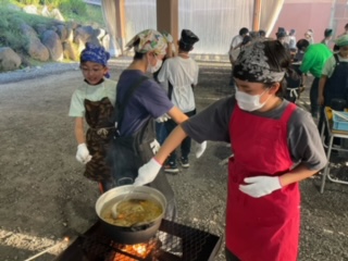 カレーもお鍋に入れる班が出てきました。
