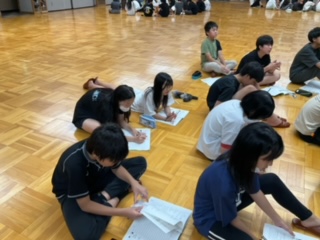 今日の班行動の振り返りと明日の確認をしています。