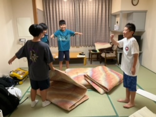 部屋会議が終わったら、就寝準備です。