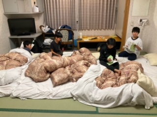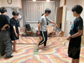 どう布団を敷くか悩んでいる班がありました。