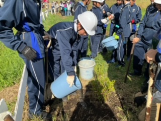 代表で4組が植樹をしています。