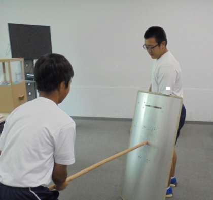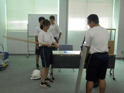 警察が使う道具の持ち方や丈夫さなどを体験していました。