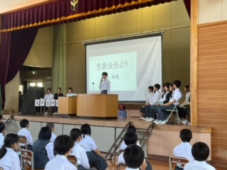 選挙管理委員会の開会の言葉、前期生徒会長の挨拶です。