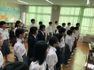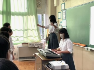 教室で合唱しています。