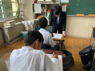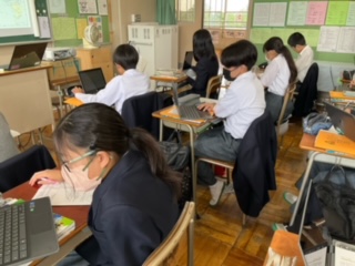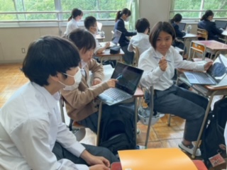 学習端末で示された資料をもとに、日本との違いを考えています。