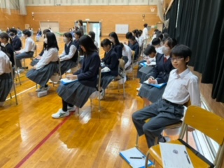 移動教室事後学習の学年発表会です。