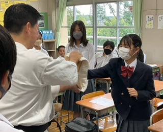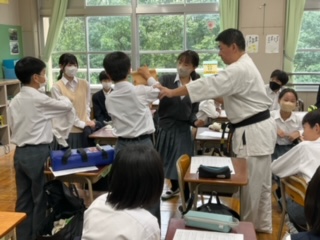空手の実技をしています。