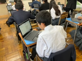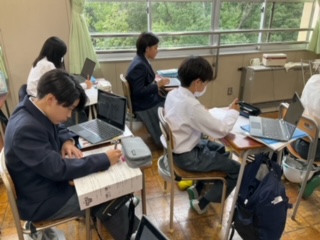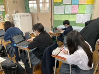 学習端末の資料を見て、平城京と平安京の違いを考えています。