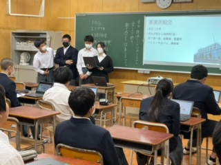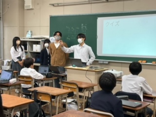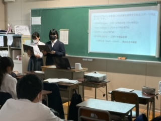 各教室に分かれて発表会を行っています。