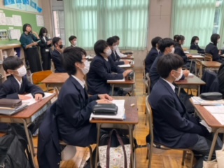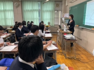 研究授業で他校の先生方が授業を参観しています。