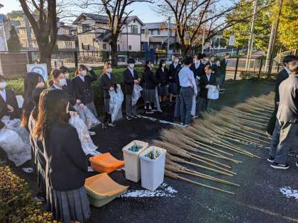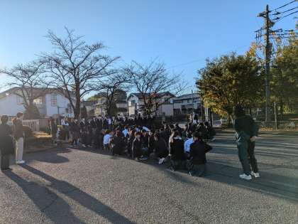 生徒会と整美委員会とのコラボ企画、落ち葉掃き活動です。