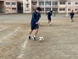 ドリブルの練習をしています。