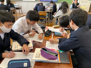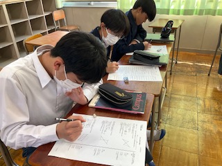 プリントで問題演習をしています。