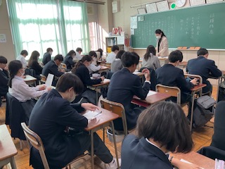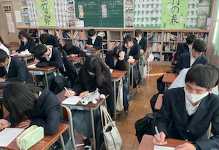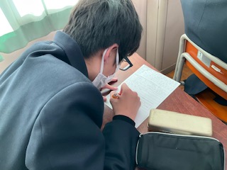 ワークシートのまとめを記入しています。