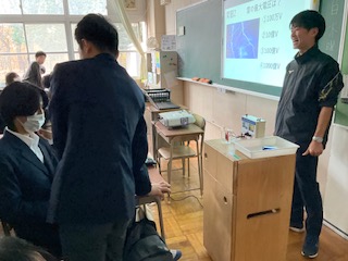 シャーペンの芯に電圧を加える演示実験を見ました。