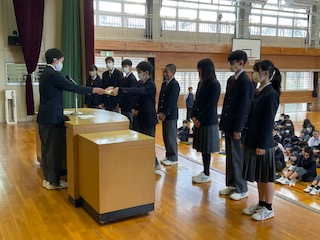 生徒会から賞状が送られました。