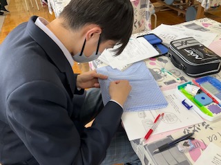 お弁当袋づくりです。