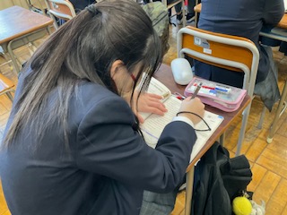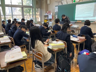 教科書の本文の内容を確認しています。