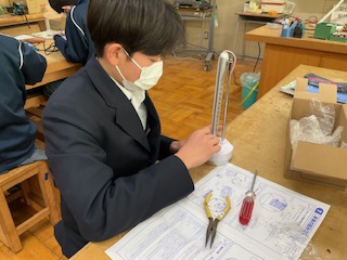 組み立てが終わったら、電池をセットして点灯チェックをします。