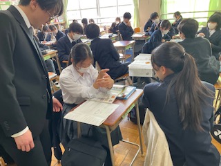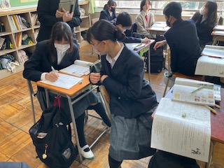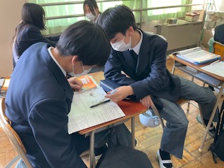 友達と意見交換をしています。