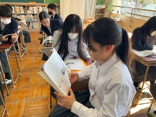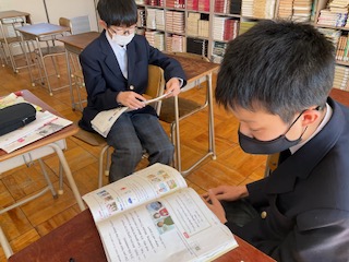 教科書の音読をペアで行っています。