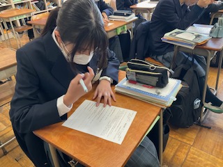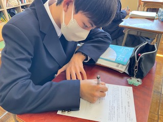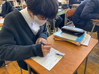 ワークシートの問題を解いています。
