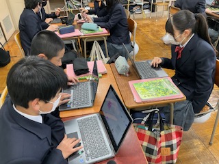付箋機能を使って、班で意見をまとめています。