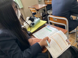 進出単語の確認をしています。