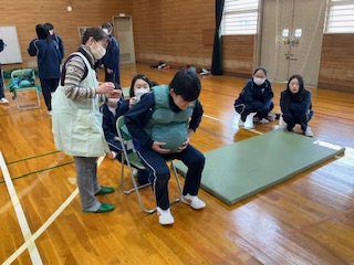 寝ている状態から起きる体験や落とし物を拾う体験をしています。