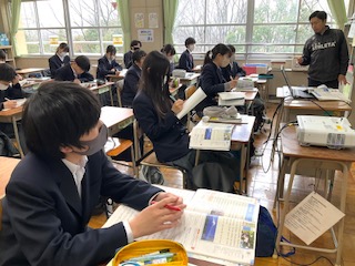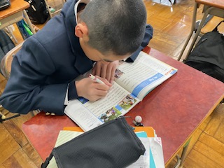 教科書の内容を確認しています。