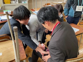 全員がエピペンを打つ練習をしています。