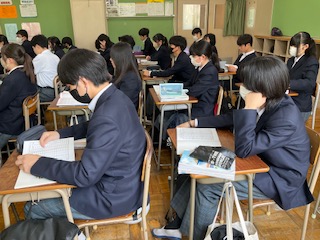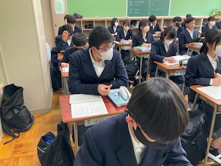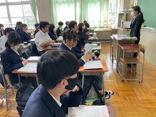 漢字の小テストの説明を聞いています。