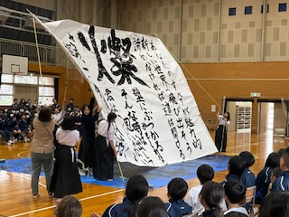 書道部のパフォーマンスです。
