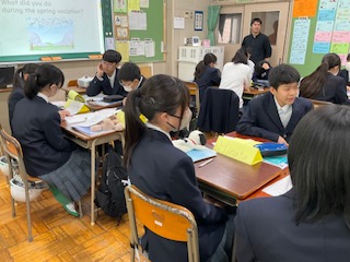 春休みに何をしたかについて発表したようです。