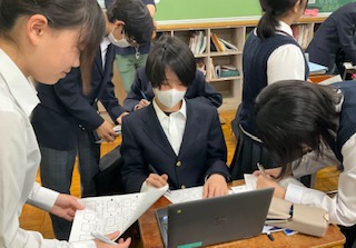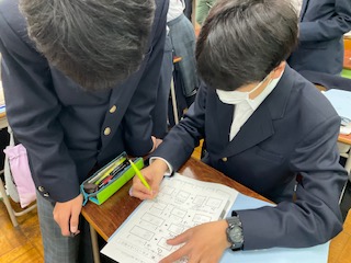友達と意見交換をしています。