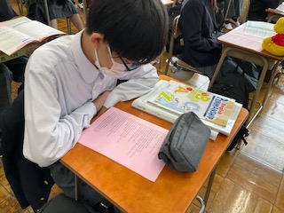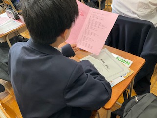 ビートルズの「Hello,Goodbye」を歌詞を見ながら歌っています。