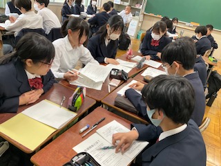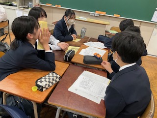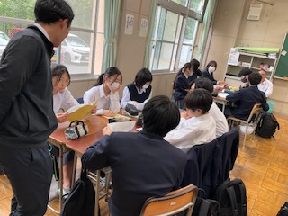 2年生は、質問事項を話し合っています。