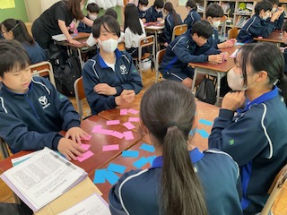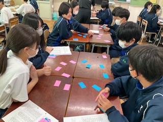 ピンクのカードには質問、ブルーのカードには応答が書いてあります。