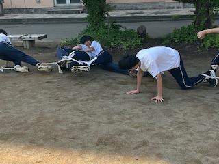 中庭でも練習していました。
