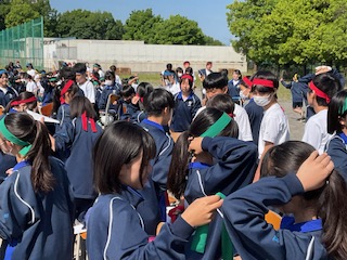 はちまきをつけて、身支度をしています。