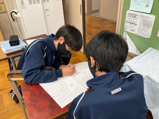 やや苦戦しており、教え合っています。