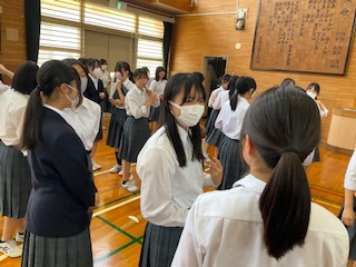 松木中の校歌の練習を一緒に行います。