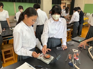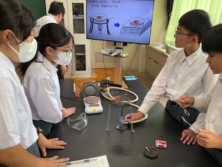 グループで銅の質量を変えて実験しています。