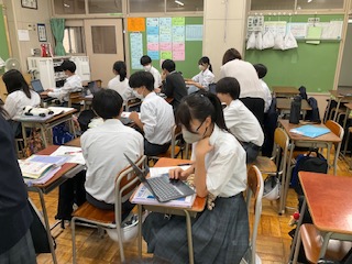 学習端末で調べ学習をしています。