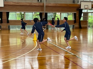 バトンパスの練習をしています。