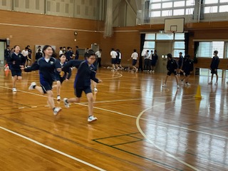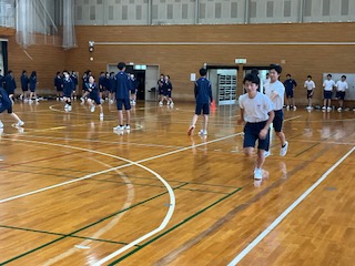 体育館での練習のため、スピードが出せません。