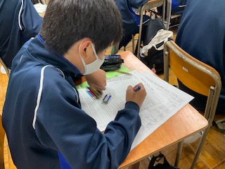 定期考査の学習計画表を記入しています。