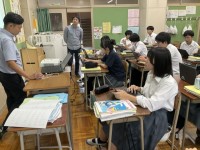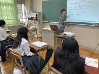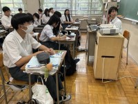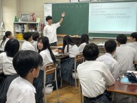 社会科の内容に関するクイズをしています。ヒントは英文です。社会科と英語のコラボ授...