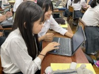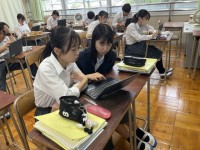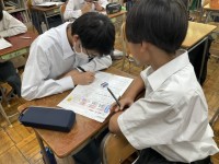 職場体験のお礼状を書いています。下書きをチェックしてもらっています。
