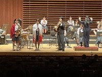 アンコールです。曲は、こちらも有名なアニメの曲です。3年生が衣装を纏っているので...